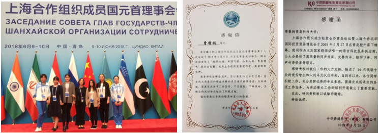 作为青岛市区内唯一具有培养俄语专业人才的学校,俄语系承担着青岛市大大小小的涉俄外事活动的翻译、语言志愿者等活动。如上合峰会前期俄语系师生参加了前期筹备工作中的翻译、语言服务等工作,峰会期间老师担任翻译,学生承担志愿者工作。从2015年开始,俄语系学生开始承担青岛市海外院士青岛行的翻译和志愿者服务工作,获得了来访院士的好评。从2018年开始,俄语系开始承担上合组织青年交流营的语言服务工作,和上合其他国家的青年一起交流思想,展望未来。其他俄语实践活动还包括上合地方经贸合作论坛、国际友好城市商品展、国际合唱大会等活动。俄语系师生在这些社会实践活动获得了主办方的认可和称赞。