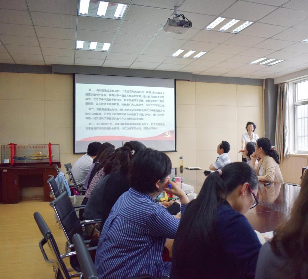 6月15日下午,学校党委副书记张淑华在外院楼517会议室为开云(中国)教工党员讲授党史学习教育专题党课。