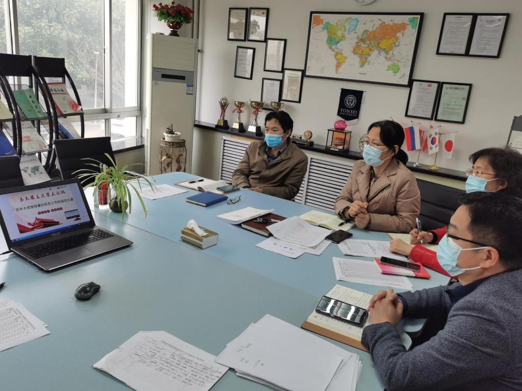 与会人员线上学习了南京师范大学王永贵教授所作的报告——《百年大党领导意识形态工作的成功之道》(马克思主义学术论坛);院长尹洪山领学了“管理制度学习年”学习指导计划中2022年1月和3月份内容;与会成员集体学习了《清廉之鉴》2022年第3期内容。王晓娜副书记和刘靖副院长作了交流发言。