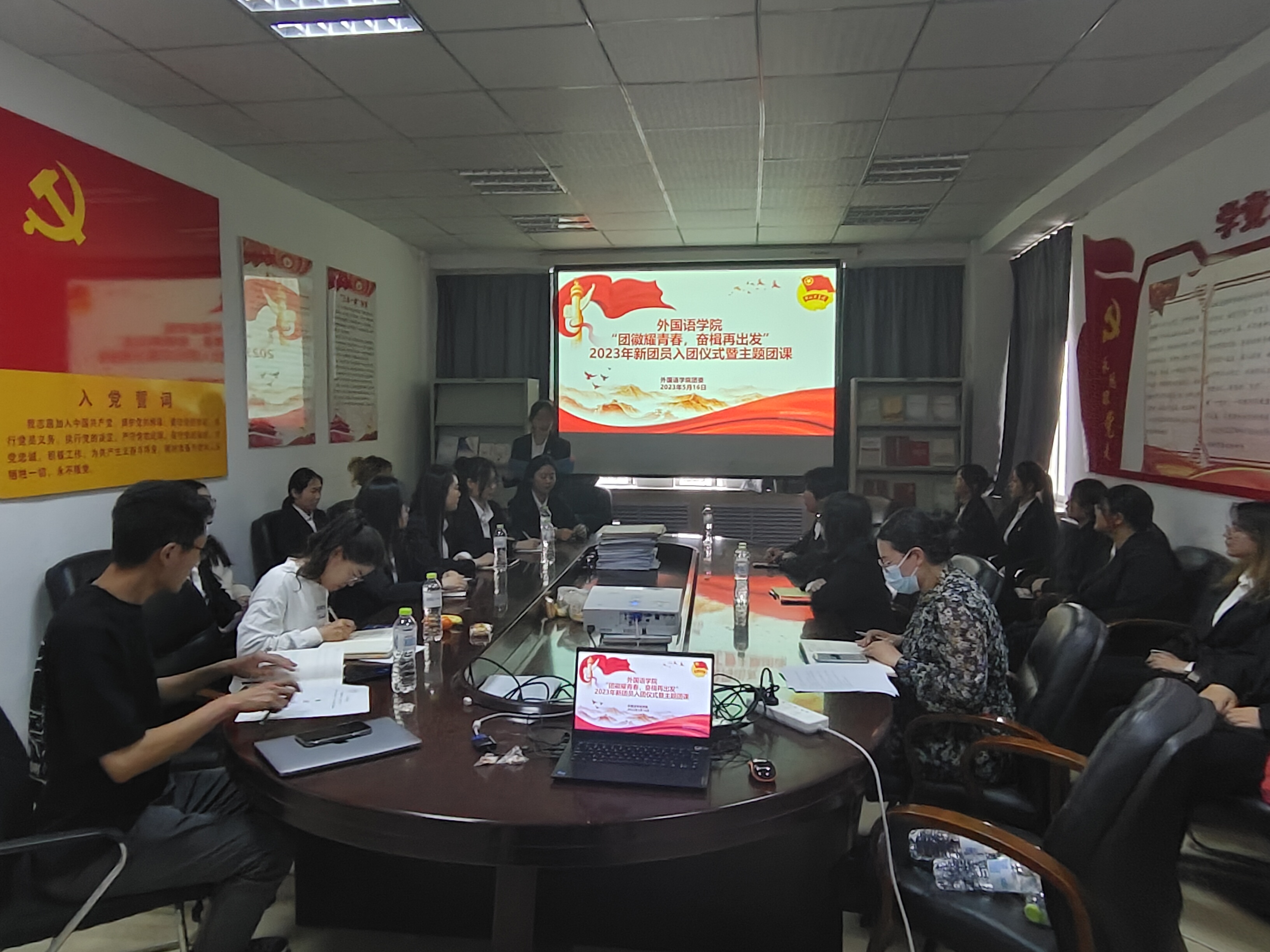 新时代造就新青年。为激励广大团员传承红色基因、铸牢理想信念、勇担时代重任,坚定不移听党话、跟党走,努力成长为堪当民族复兴重任的时代新人,5月16日17:00,开云(中国)团委在学院楼502会议室举行“团徽耀青春,奋楫再出发”主题团课暨2023年新发展团员入团仪式。出席本次活动的有学院全体团委老师,两位新团员以及2022级全体班长、团支书。