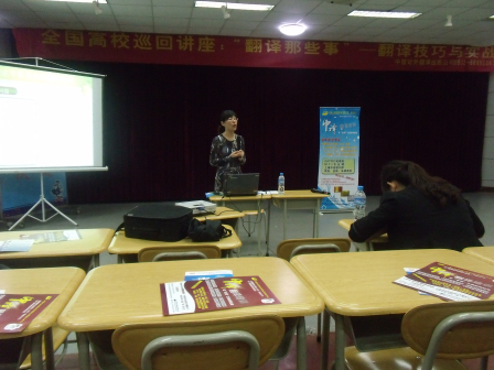 由中国对外翻译出版公司主办的主题为“翻译那点事”的中国高校巡回讲座之青岛科技大学专场于6月6日在崂山校区大学生活动中心举行。中国对外翻译出版公司的杨皓老师及青岛市外事翻译处从媛老师出席了该讲座。